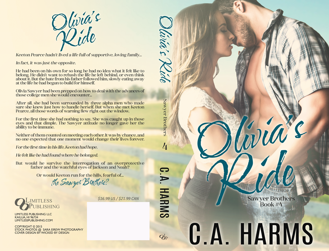Title: Olivia's RideSeries: Sawyer Brothers #4Author: C.A. HarmsGenre: Western Contemporary RomanceRelease Date: July 5, 2016Buy Now: