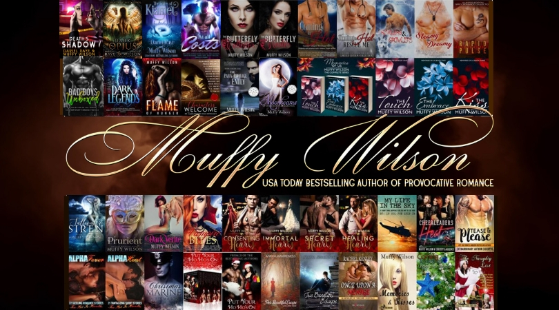 Join Muffy's mailing list to get the scoop on her new releases and special promotions at www.MuffyWilson.com. Follow her on Facebook at facebook.com/wilsonmuffy or /MuffyWilson.com and on Twitter at @SexyMuffyWilson. Muffy also blogs daily here: http://muffywilson.blogspot.com ~ Contact Muffy at Muffy@MuffyWilson.com. ~ Live, Laugh, Love with Passion