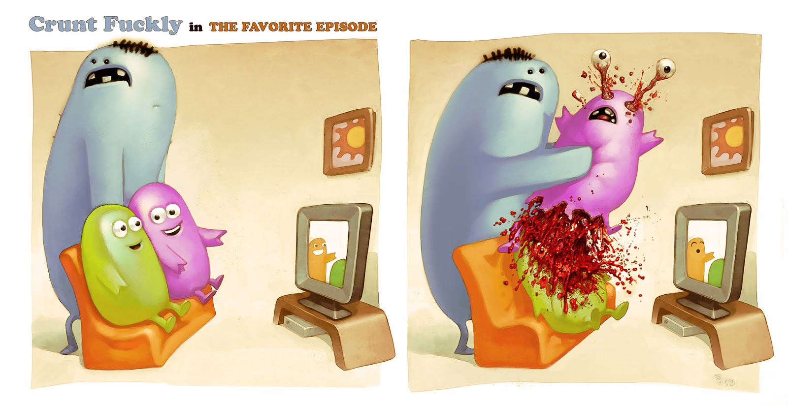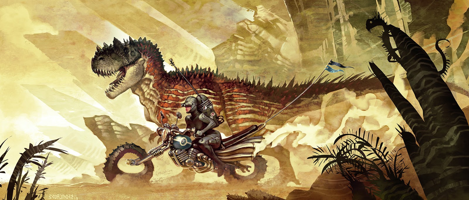 Now, I've taken the artistic liberty of imagining them as dinosaurs, in situations unrelated to the game proper, but I think the connection is implicit.