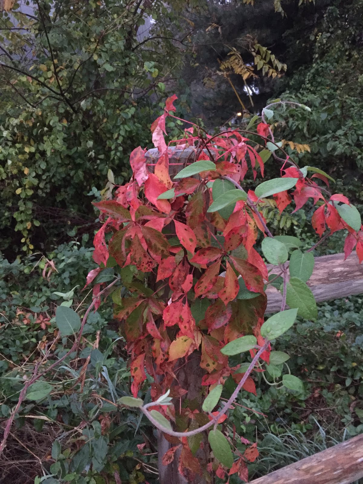 The other thing I am to do each day this week is bring mindful awareness to some otherwise routine activity. So on my daily walk this morning, I paid close attention to the leaves. I found their colors to be soothing and beautiful and interesting. I liked this exercise. This one didn't make me feel CRAZY.