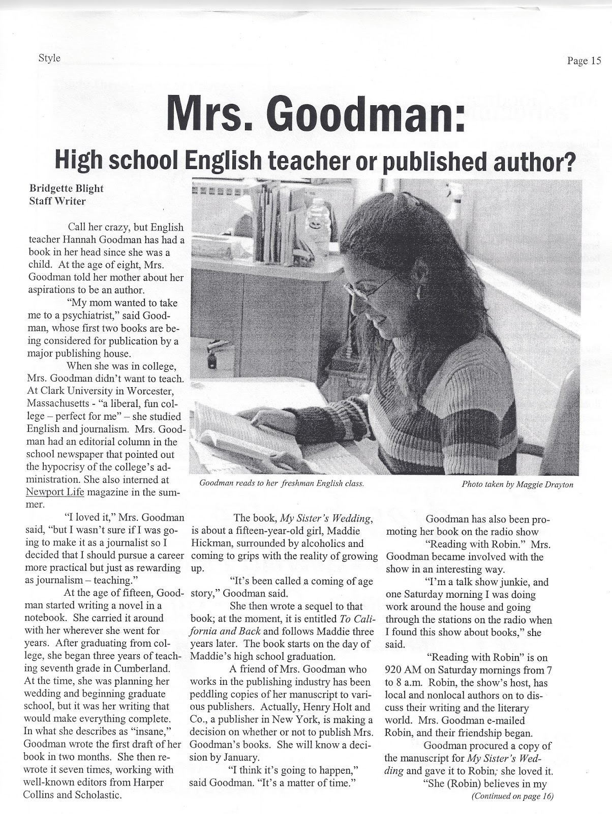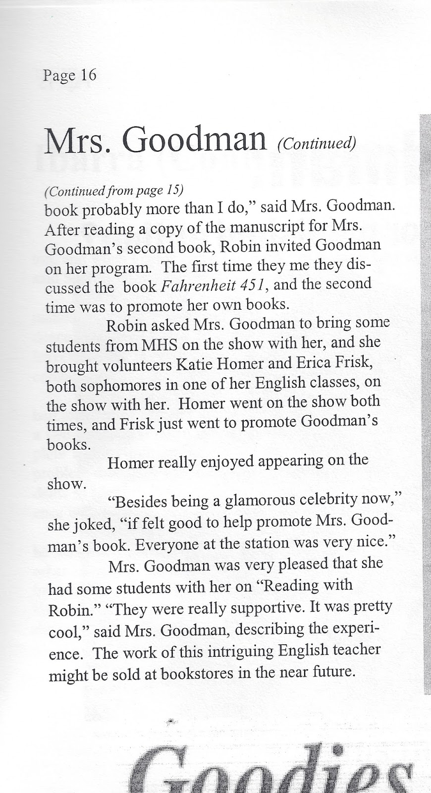What's great about this article is how my superintendent READ the book and my principal put it on the summer reading list. Very cool. The reporter made me feel like a celebrity. I mean I was on the front page of the paper, so come on!