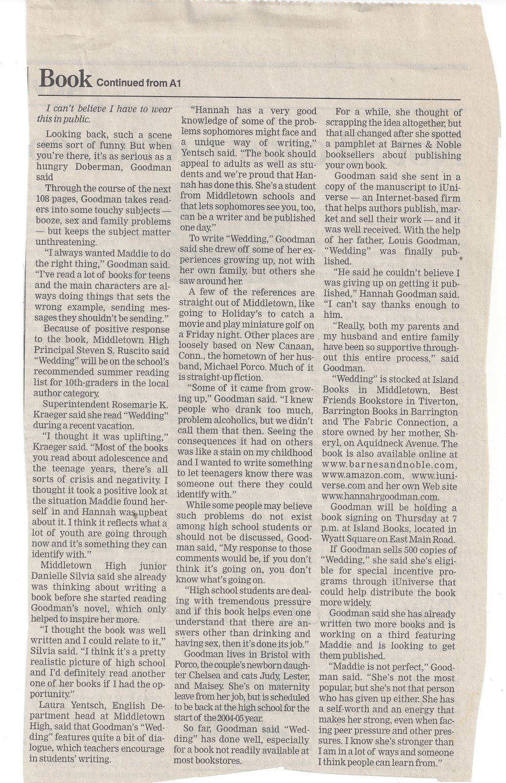 Probably what I like the most about this article is that they call the main character "Maggie" instead of "Maddie". Oh, well.April 13, 2005, The Providence Journal