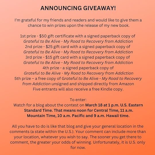 *Excerpted from my forthcoming memoir, Grateful to Be Alive: My Road to Recovery from Addiction*