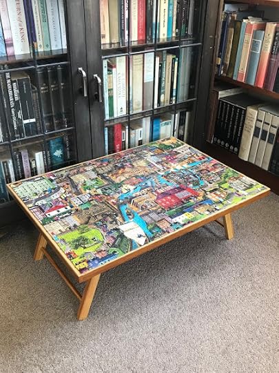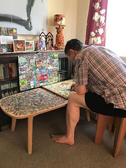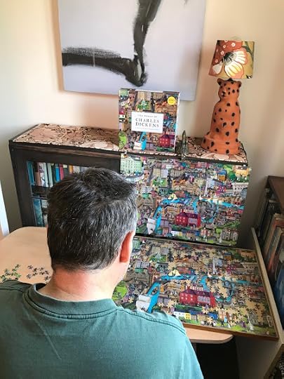 For Christmas 2021, Bronwyn gave me a 1,000-piece jigsaw puzzle called The World of Charles Dickens. It took us almost a week to complete it. Above you can see me putting in the very last piece. Below is an earlier stage of the process.