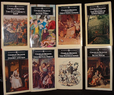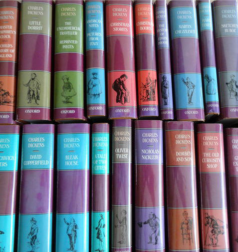 The Oxford Illustrated Dickens (21 volumes: 1987)It did get me thinking about Dickens in general. In an earlier post about my Grandmother and her book collection, I mentioned the 22-volume set of his works which she and my grandfather painstakingly saved up for in the 1930s, and which has eventually made its circuitous way to my own bookshelves.