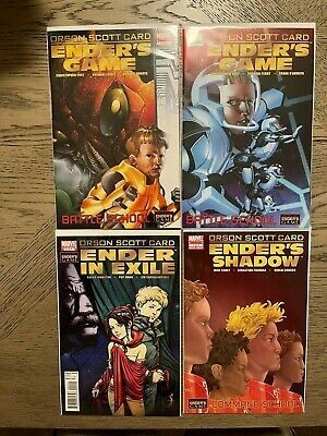 Ender’s Game. The Ender Quartet, 1. 1985. A Legend Book. London: Arrow Books Ltd., 1988.Speaker for the Dead. The Ender Quartet, 2. 1986. A Legend Book. London: Arrow Books Ltd., 1986.Xenocide. The Ender Quartet, 3. 1991. A Legend Book. London: Arrow Books Ltd., 1992.Children of the Mind. The Ender Quartet, 4. 1996. A Tor Book. New York: Tom Doherty Associates, LLC, 1997.Ender's Shadow. 1999. The Shadow Saga, 1. An Orbit Book. London: Little, Brown and Company (UK), 2000.Shadow of the Hegemon. 2000. The Shadow Saga, 2. An Orbit Book. London: Little, Brown and Company (UK), 2001.Shadow Puppets. 2002. The Shadow Saga, 3. A Tor Book. New York: A Tom Doherty Associates Book, 2003.Shadow of the Giant. 2005. The Shadow Saga, 4. A Tor Book. New York: A Tom Doherty Associates Book, 2006.First Meetings in the Enderverse. An Orbit Book. London: Time Warner Books UK, 2003.A War of Gifts: An Ender Story (2007)Ender in Exile (2008)Shadows in Flight. The Shadow Saga, 5 (2012)[with Aaron Johnston] Earth Unaware. First Formic Wars trilogy, 1 (2012)[with Aaron Johnston] Earth Afire. First Formic Wars trilogy, 2 (2013)[with Aaron Johnston] Earth Awakens. First Formic Wars trilogy, 3 (2014)[with Aaron Johnston] The Swarm. Second Formic Wars trilogy, 1 (2016)Children of the Fleet. Fleet School (2017)Ender's Way: short stories (2021)[with Aaron Johnston] The Hive. Second Formic Wars trilogy, 2 (2019)The Last Shadow. The Shadow Saga, 6 (2021)[with Aaron Johnston] The Queens. Second Formic Wars trilogy, 3 (tba)