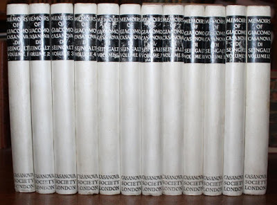 The Memoirs of Giacomo Casanova di Seingalt, Translated into English by Arthur Machen. Privately Printed for Subscribers Only. 1894. Limited Edition of 1,000 numbered sets. + The Twelfth Volume of the Memoirs of Giacomo Casanova; Containing Chapters VII. and VIII. Never Before Printed; Discovered and Translated by Mr. Arthur Symons; and Complete with an Index and Maps by Mr. Thomas Wright. 12 vols. London: The Casanova Society, 1922-1923.