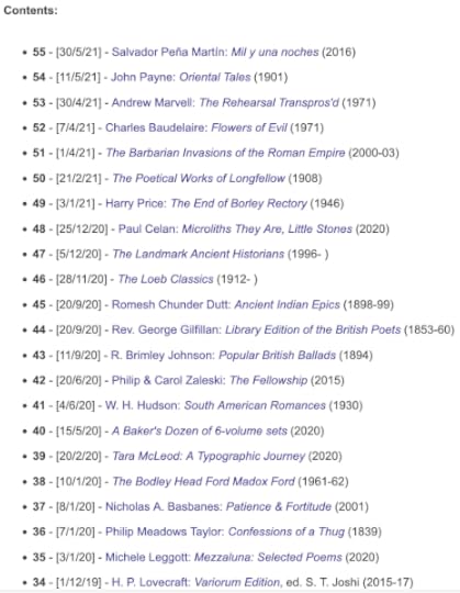 Besides the principal functions mentioned above, my own book collection website, A Gentle Madness, includes complete listings of the books of favourite authors of mine so that I know what I still need to be be on the lookout for. It also includes a category of posts about recent acquisitions to my library.