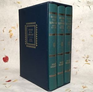 Hours in a Library, by Leslie Stephen (3 vols). Introduction by Jonathan Steinberg, with 35 full-page portraits. Full blue-green cloth with a design in black and gold by Caroline Archer, dark blue endleaves. Dark blue three-volume slipcase. 22.8 x 15 cm. 354 / 360 / 344 pp.