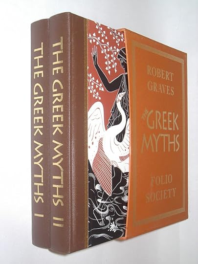 The Greek Myths, by Robert Graves (2 vols). A reduced size reprint of the first edition of 1996, divided into two volumes in a two-volume slipcase. Vol.1 342 pp, 12 leaves of plates. Vol.2 357 pp, 4 leaves of plates. Map endleaves. Quarter-bound in brown cloth with image printed brown and black covers. Orange slipcase with gilt title. Each book 22.8 x 15 cm.