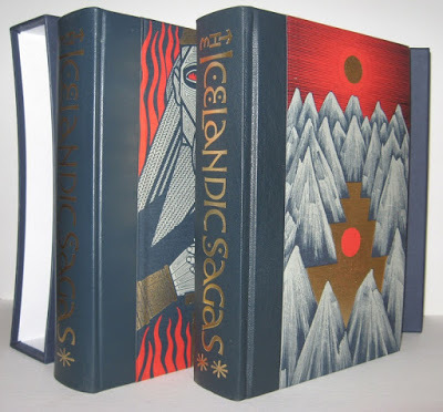 Icelandic Sagas I. Introduction by Magnus Magnusson. 16 colour plates by Simon Noyes. Map endpapers. Quarter black morocco over illustrated cloth boards with gilt titles on spine. 809 pp. 25.3 x 17.6 cm.
