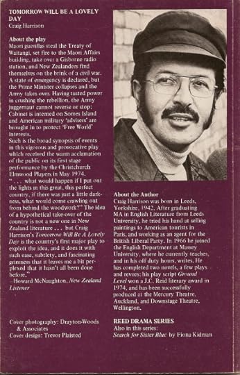 But I've strayed a long way from Craig Harrison and his play. Harrison was then an English lecturer at Massey University, and was rising rapidly in the New Zealand literary scene. I met him years later, in 1991, when I was employed as a tutor down in Palmerston North.