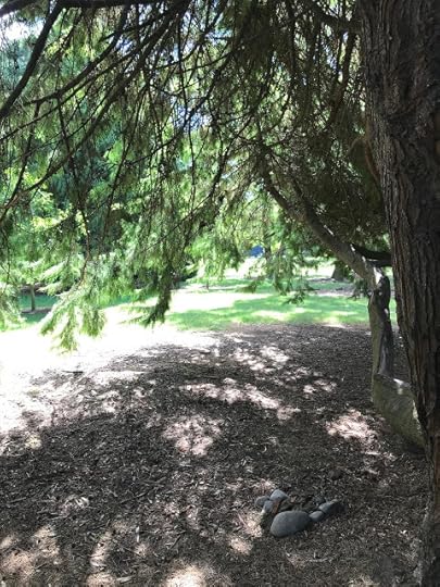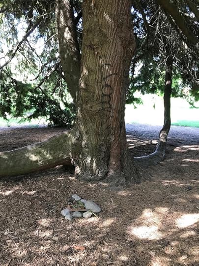 I'd seen that there was a small stack of bones beside one of the trees when we arrived at the rest area (more of a pulling-over place, really). Now I began to see that they were quite large leg bones, and had definitely been gnawed by someone or something.