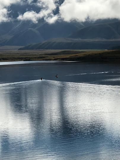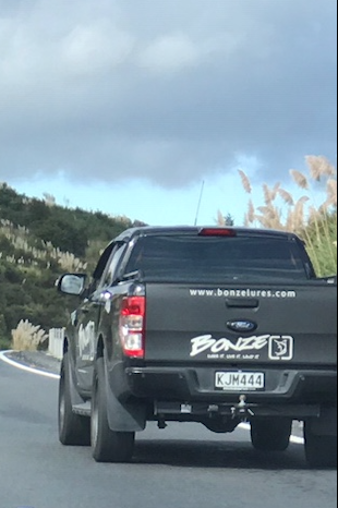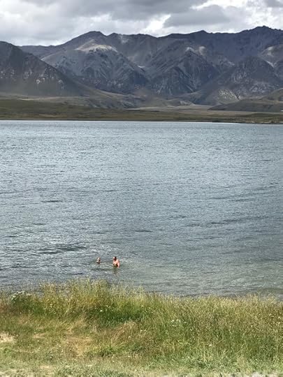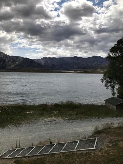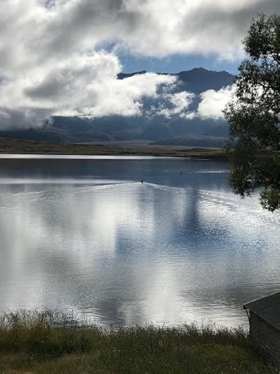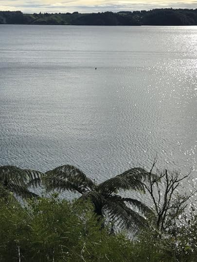 As she got out of the car, Bronwyn remarked on the little buoy visible in the picture, claiming that it looked like a taniwha, and could easily be made into a picture of Nessie or some other lake monster.