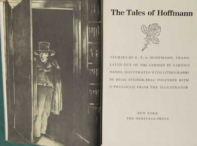 Hoffmann, E. T. A. The Tales of Hoffmann: Stories by E. T. A. Hoffmann, Translated out of the German by Various Hands, Illustrated with Lithographs by Hugo Steiner-Prag Together with a Prologue from the Illustrator. Introductory Essay by Arthur Ransome. Trans. J. T. Bealby, E. N. Bennett, Alex Ewing, Maria Labocceta, Jacques Le Clercq, Barrows Mussey & F. E. Pierce. The Limited Editions Club, for the George Macy Companies, Inc. New York: The Heritage Press, 1943.The SandmanThe Mines of FalunCouncillor KrespelDon JuanThe Mystery of the Deserted HouseThe VowMademoiselle de ScudéryThe EntailThe Uncanny GuestGamblers' Luck