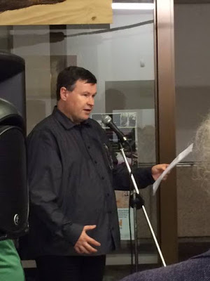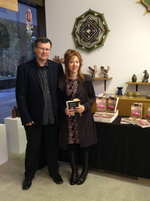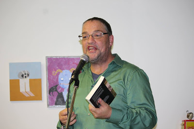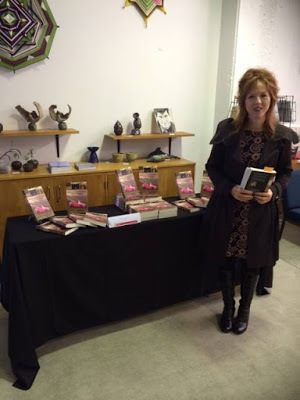 Here's Tracey with her book (unless otherwise noted, all the pictures in this post have been borrowed from Mayhem Literary Journal's facebook page):