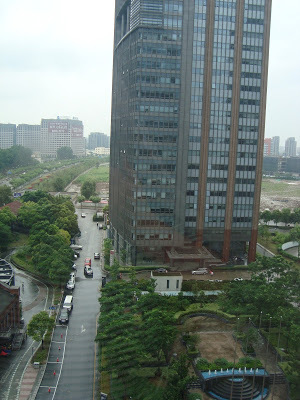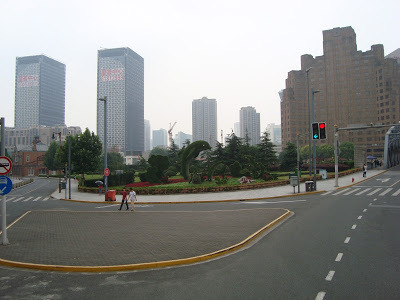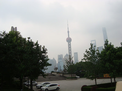 We arrived in Shanghai on Monday morning (11/7): a characteristically misty day. This is the view from our window in the Guoman Hotel: