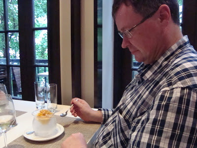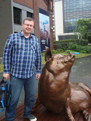 And if you're wondering why I'm looking like this, the picture below of me sampling a Mango Lassi dessert in one of Shanghai's top restaurants might offer a few clues (the statue of the pig is outside the Jackie Chan Museum, just beside our hotel):