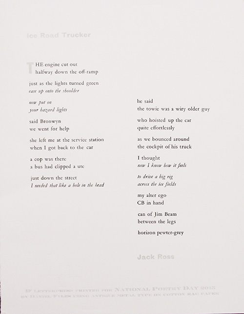 Jack Ross: Ice Road Trucker, designed by Daniel Fyles (2015)