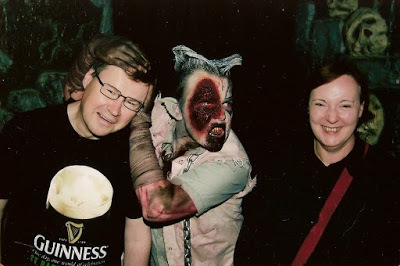 We'd hardly got out of the car before we were accosted by a particularly belligerent member of the walking dead, waving a cleaver, and from there things only got stranger. There was a kind of do-it-yourself enthusiasm about the staff: mad nurses, vampires, zombies, ghosts and all. They seemed determined to demonstrate their acting chops, and for all our fine talk beforehand, it wasn't long before we too were running and squealing like girls.