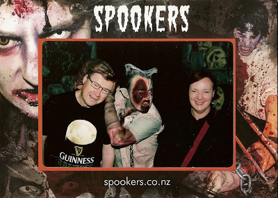 My birthday treat this year was a visit to Spookers. Spookers, for those of you who don't know, is a kind of creepy amusement part which has been set up in some old buildings at the back of Kingseat, once a dreaded Auckland mental hospital.