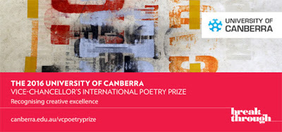 I'm pretty chuffed to have been asked to act as a long-list judge for the 2016 University of Canberra Vice-Chancellor's Poetry Prize (entries open from 2 November 2015 – 30 June 2016).