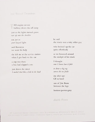 The important point, though, is that I think this is another great idea from the nzepc. A small but instantly accessible selection of audio poems is a very useful thing for a writer to have. In many ways, it's the next step forward from our three Auckland University Press audio / text anthologies of New Zealand Poets in Performance.