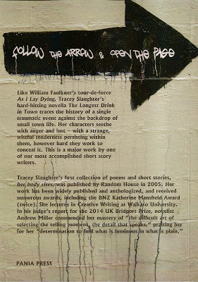 Tracey has a somewhat larger collection, Deleted Scenes for Lovers, due out from Victoria University Press in early 2016, but this is her first stand-alone book since Her Body Rises (Random House, 2005) - though of course her stories have appeared in many, many magazines and anthologies since then.