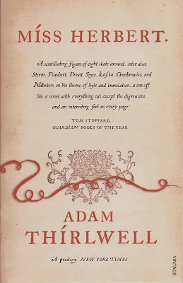 The book Mark Nicholls wanted me to write about was Miss Herbert (2007), by British novelist Adam Thirlwell. The reason this surprised me was that he based the request on the blogpost I'd written about it, a piece which strikes me (in retrospect) as rather unkind - though I certainly don't subscribe there to any of the more ad hominem attacks Thirlwell's book received in the more up-themselves reviews.