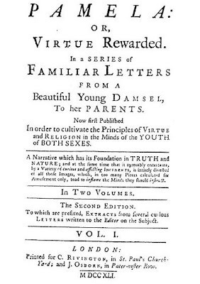 I guess I picked it up with a certain frisson, because it suddenly occurred to me that someone else might have finally written the book I'd been secretly planning myself for years: an alternative history of the novel, written in opposition to Ian Watt's classic (but somewhat reductionist) The Rise of the Novel: Studies in Defoe, Richardson and Fielding (1957). For years I'd been irritated by Watt's implication, codified into dogma by generations of lazy critics, that Samuel Richardson was somehow the "first novelist", and Pamela, or Virtue Rewarded(1740-41) thus the "first true novel."
