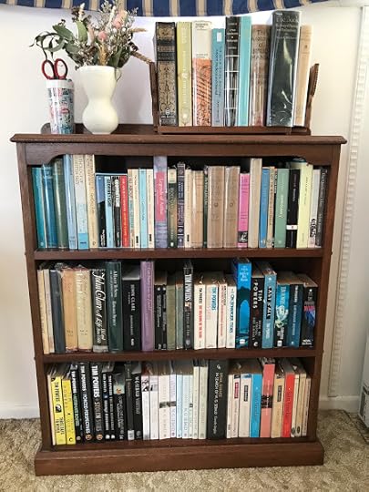 Wairau Park Hospice Shop (2020)Or, rather, there were two bookcases. One was so large and imposing that it was hard to imagine fitting it into our remaining free wallspace. However the other, smaller one had tall, wide, wooden shelves, and looked tailor-made to hold some exciting new category of books.