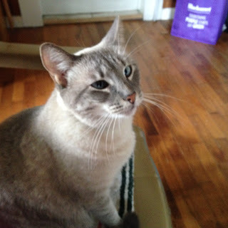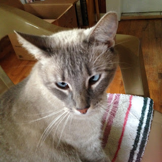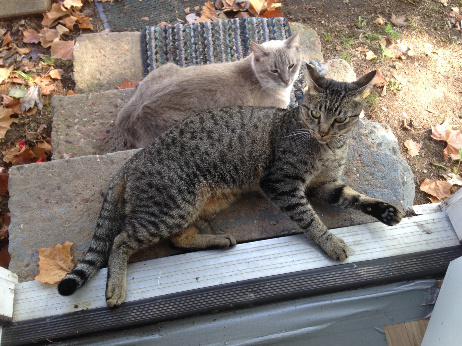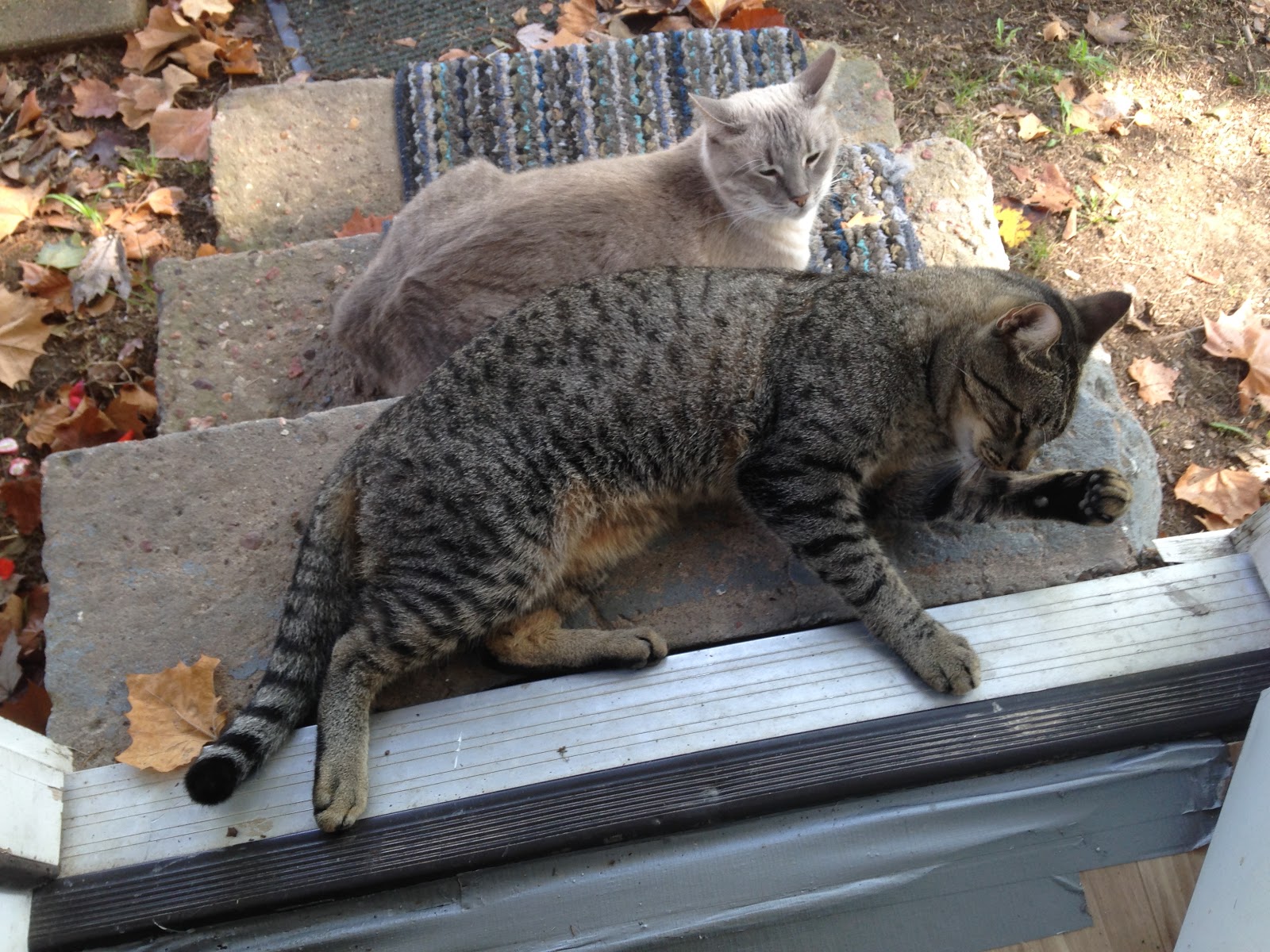3face against the corner of my laptop, shoving it a bit with each rub. I get the message. I let the cat out. Since I’m up, I move the laundry to the dryer.