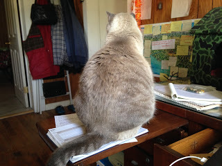 I get up, walk the dog, let the cats out, and begin getting the husband off to work. After breakfast and a brief discussion of the morning news, I kiss my spouse and hand him his lunch as he walks out the door. The cats come in. I feed the cats, turn off the television and turn on my laptop. After a brief run through of my email and a quick glance at FaceBook, I find that it is noon. I let the cats out, step into my shoes and walk the dog. I ignore the sink full of dirty dishes and the overflowing laundry basket because I am serious about my craft.