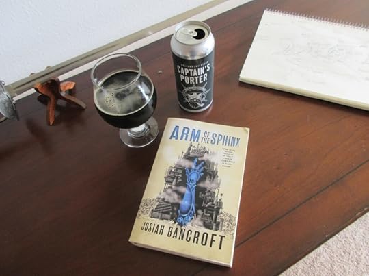 Local craft brews can often be hit or miss because the main cachet is the local part. The perceived value add of artisinality (?) is often used to justify the price premium, so you can encounter truly awesome, innovative beers as well as boring ones with little to distinguish them. Big Lake Brewing Captain’s Porter is a middle of the road example that is neither of these, but is a satisfying choice for those of us still resisting the tidal waves of summer IPAs. This 6.5% ABV, 41 IBU porter is well balanced with toasted malt and some nice cola, nut, and smoke flavors but also some underlying herbal bitterness on the finish. It’s not nearly as thick as one might expect (or fear), with a head that evaporates quickly. It won’t knock your socks off, but neither is it a disappointment. Senlin spends most of Arm of the Sphinx as an airship captain also trying to find middle paths, so this porter seems appropriate.