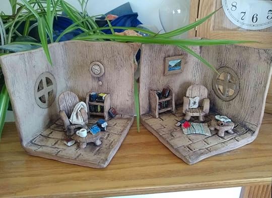 A pair of bookends that’ll be available at ArtWalk! Better pictures coming soon.