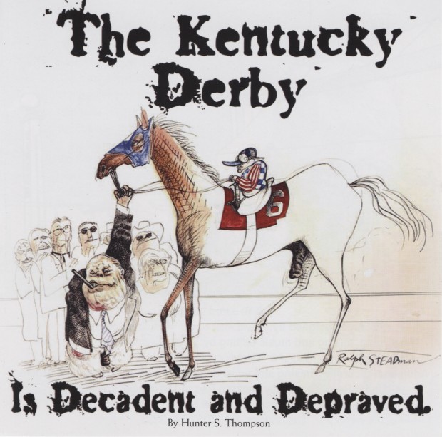 This is Kentucky Derby weekend, which is my excuse to make a mint julep and re-read Hunter S. Thompson's "The Kentucky Derby Is Decadent and Depraved," long hailed as the prototype of Gonzo journalism. Only this year, I don't have to re-read it; I can listen to it. There's a new audio version (on CD, as well as iTunes), narrated by Tim Robbins with a score by Bill Frisell. There are also guest stars: Dr. John, Will Forte, and, in a surreal masterstroke, artist Ralph Steadman, who voices himself. I've only listened to a few sections, wanting to save most of it for later, when I've mixed my first not-so-bad julep. Like Thompson, I could give a crap about the horse race. I love "Kentucky Derby" for the voice, and you know what? Robbins does a pretty great HST, and it's no clone of Johnny Depp's version.