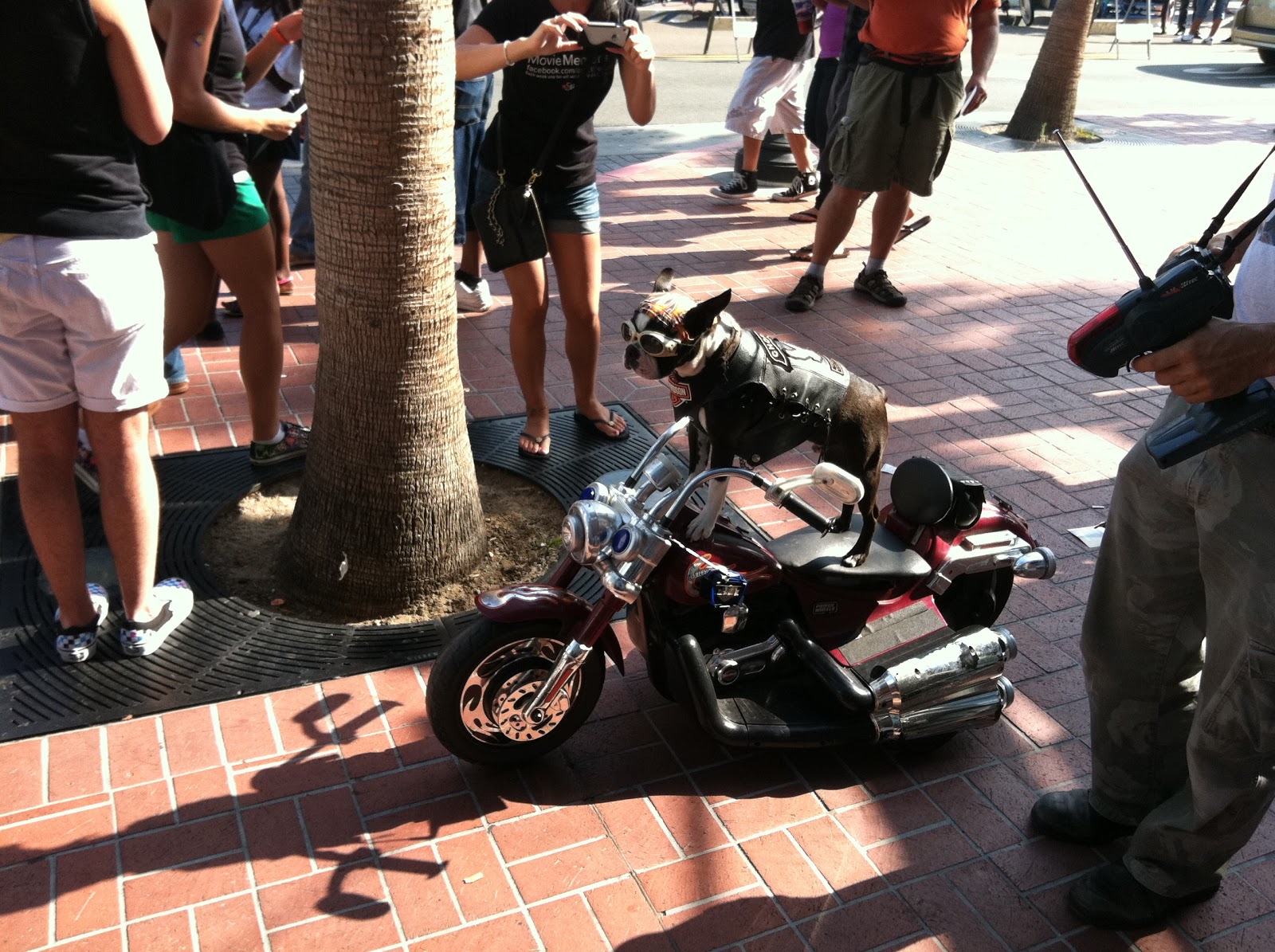 "What the fuck, Charlie Huston?"Before long, it was time to return to L.A. I made it to the train station early... only to learn that Comic-Con Con-gestion had snarled up the schedules something fierce, so my 8:20 train turned into a 9:30 train, depositing me back at Union Station just after midnight. You know, I really should have tried to hitch a ride back with that dog on the mini-hog.