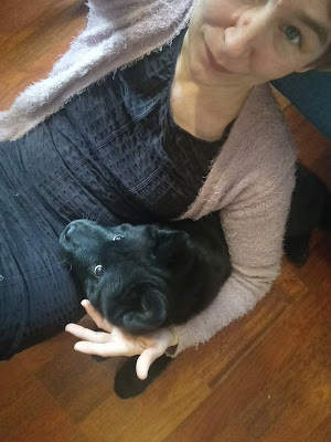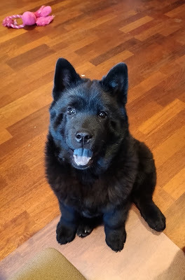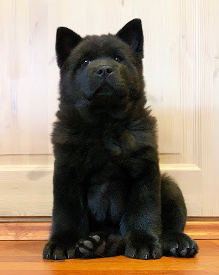 Ja siis ühel päeval nägin ma just seda, mida olin otsinud - tobeda ja natuke uduse näoga musta värvi kutsika pilti. Kutsikatega muidugi ongi selline lugu, et nad on loodud nunnuks ja loodus leiab igaühele kellegi, kes murdub. Mina ei olnud juba aastaid näinud ühtegi sellist kutsikat, kes oleks mind kõnetanud. Tema kõnetas. Tegin iseendaga kokkuleppe, et kui ma järgmisel päeval ka veel tema peale mõtlen, siis kirjutan kasvatajale ja küsin. Järgmise päeva hommikul ärkasin mõttega, et kas nüüd juba võib kirjutada. Nii see läks. Kes tahab pikemat lugu kuulda, võib mõnikord koogi ja kohvi kõrvale küsida. Aga see siis on tõesti pikk lugu, nii vähemalt suure koogi suurune.