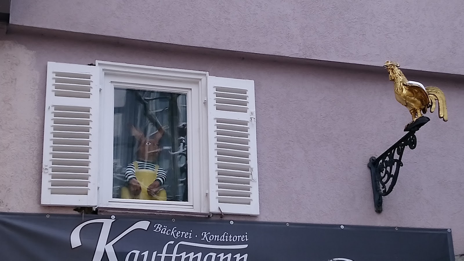Pärastlõuna veetsime Waiblingenis, kus kohalikus kunstigaleriis oli päris hea käärilõigete näitus ja keset linnasüdant ilutses lihavõttelaat. Tõtt öelda ei erinenud see kuidagi tavapärasest jõululaadast, ainult munad olid piparkookide asemel. Siiski oli seal midagi, mida ma ei oleks osanud sellisele laadale sobitada - paar mees kaubitsesid hambaarstitarvikutega. Mõelda vaid mis kena mõte - lähed lihavõttelaadale ja ostad endale hambatangid. Kena kohe pühadele vastu minna, kui oled ise enda suu korda teinud.