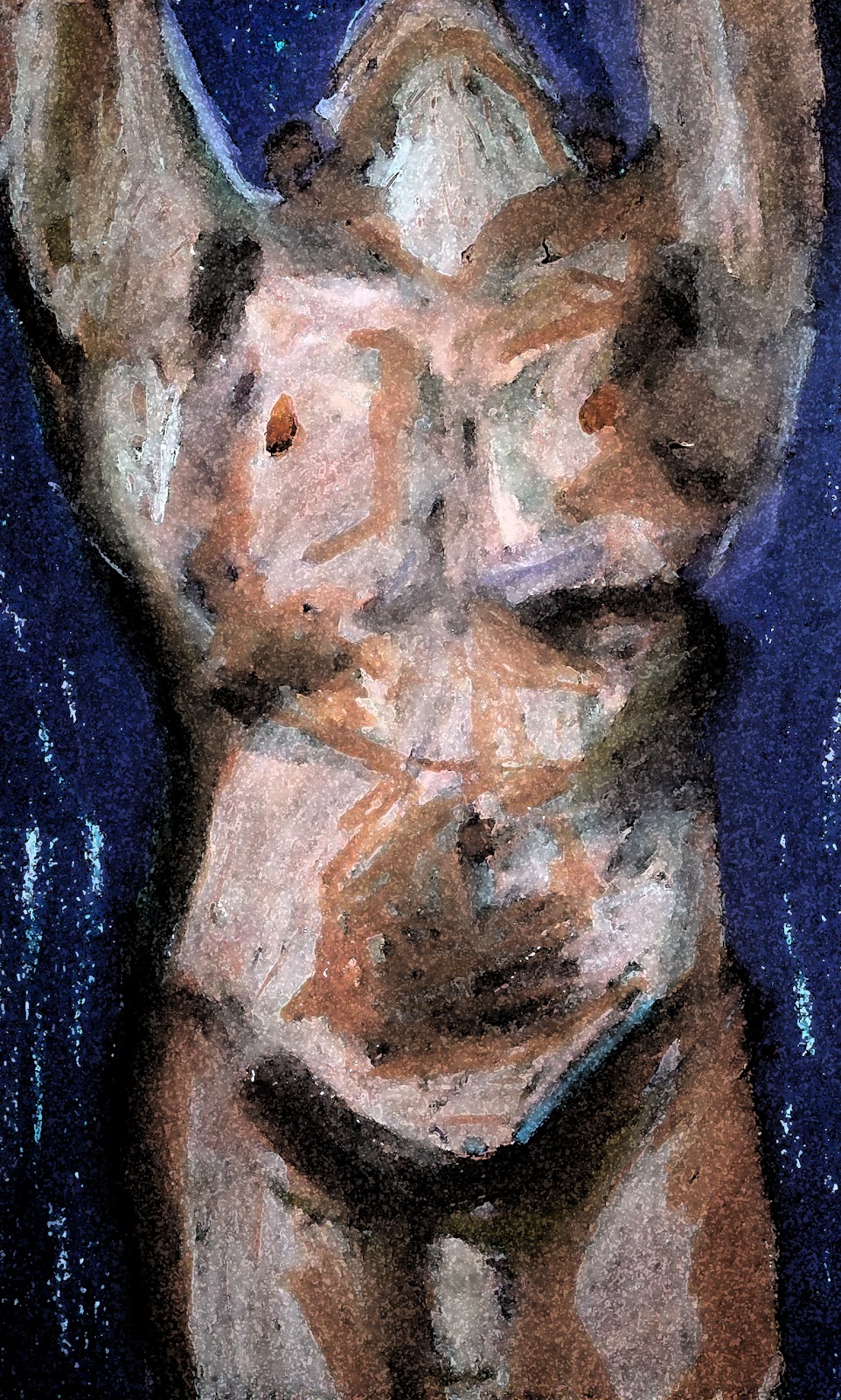 Occasionally, he doesn't feel like he's straining quite enough; he doesn't deserve the release. For example, in the less striking poem "Eros": "Inferno, bright flame, the spasm of flesh./ Halos blazing sparks ignite: orgasm."