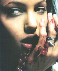 I’ve talked before about the first photograph that inspired the character Lorelei in my original short story about the succubus who falls in love with the angel. The story sprang from a photo in Access magazine that accompanied an interview with Angelina Jolie just after Hackers came out.