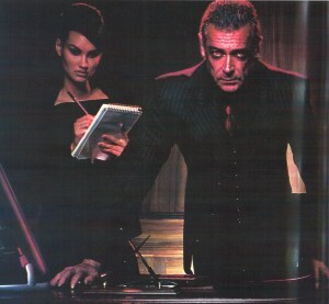 This leather jacket and skirt came from Gianfranco Ferre. It seems like exactly the sort of thing Yasmina would wear. In the books, she’s always entertaining herself by flaunting the serpent in her nature.