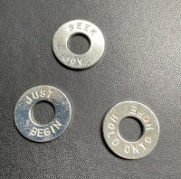 In 2019. Facebook advertised a company that would put a word of your choosing on a silver washer and make a bracelet out of it. I thought about it for a while, but I couldn’t commit to a single word. I decided the advice I needed to wear was “Just Begin.”
