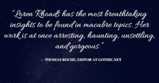 Top 5 weird facts about Loren Rhoads and her morbid life:5) I used to publish a magazine called Morbid Curiosity, which collected confessional essays from around the world. Editing those tales taught me that sometimes humor is the only way to survive the darkness. Needless to say, I have a very weird sense of humor.