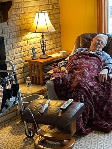 After two weeks, I had to go back to Michigan a third time. Dad kept falling. Mom couldn’t manage his meds. The home health doctor I’d set up in December stopped coming for no apparent reason. The first few days I was back, Dad seemed fine: he came to the table to eat, was actually hungry, and was clear and conversational. Then he may have had a stroke, although no one knew for sure. We kept him home while I begged the home nurse to come visit. That nurse took one look at him and called for an ambulance to take Dad back to the hospital. It was a huge relief.
