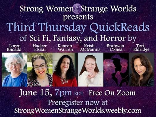 I am very excited to do my first reading of the year online on June 15. I’ll be joining Hadeer Elsbai (The Alamaxa duology), Kaaron Warren (Into Bones like Oil), Kristi McManus (Our Vengeful Souls), Branwen OShea (The Calling), and Tori Eldridge (Dance Among the Flames and The Ninja’s Daughter). This is a dream lineup!