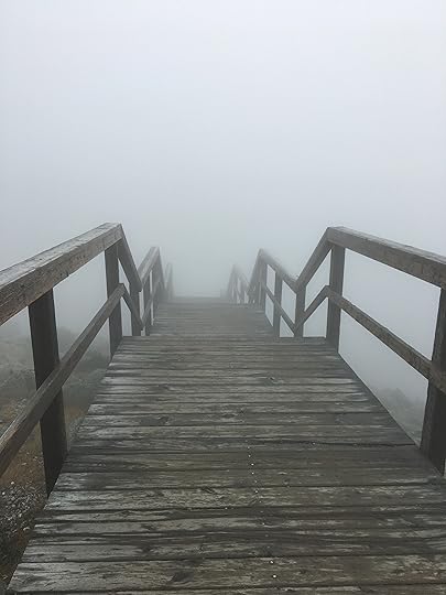 The one photo below of the walking path shrouded in fog is from the top of Mt. Washington. It was 30 degrees with high winds and zero visibility up there this morning.