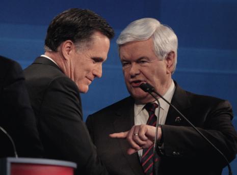 The debate began, as expected, with Bain Capital. This being a Fox News event, the questioner, Brett Baier, framed the issue by asking Newt Gingrich to justify attacking free market capitalism, which he did quite handily, I thought. "I don't think raising questions is solely a prerogative of Barack Obama," Newt said, adding that in some of the companies Bain invested in there seemed to be a pattern of saddling them with huge debts and driving them into bankruptcy. That, he said, was "something he"—Romney—"should answer."