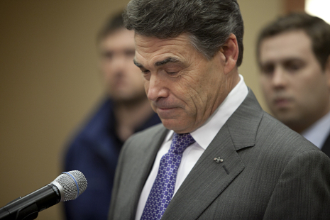 Even today, in his withdrawal speech, which he delivered from a hotel conference room in Charleston, Perry managed to mangle his message. Citing the Texan legend Sam Houston as his inspiration, he said, "I know when it is time to offer up a strategic retreat," and offered up this testimonial to the man he was urging voters to support for the White House. "Newt is not perfect, but who among us is? The fact is there is forgiveness for those who seek God. And I believe in the power of redemption, for it is a central tenet of our faith."