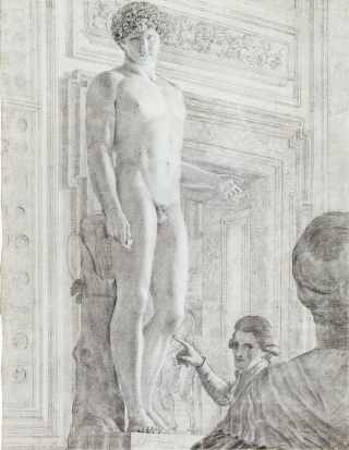 The drawing of the Antinoos statue isabove, but interestingly the background isn���t the Hall of the Emperors, but a much more general evocation of the museum as a whole ��� as if to put the central figure in the Hall of the Emperors at the centre of whole museum show.